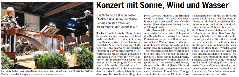 Stockach. Ein ganz besonderes Frühlingskonzert konnte die Stadtmusik Stockach am Samstagabend ihren ZuhörerInnen am Samstagabend in der Jahnhalle bieten. Denn in das Konzert eingebettet waren auch die zwei Stücke, mit denen der Klangkörper, unter der Leitung von Helmut Hubov, am kommenden Samstag bei den Wertungsspielen des Blasmusikverbands Hegau-Bodensee als einzige Kapelle in der Höchstklasse antreten wird.